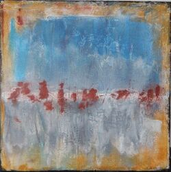 Techniken wie Acryl, Kreide, Asche, Papier, Kohle, Collagen, Schichtarbeiten und bin