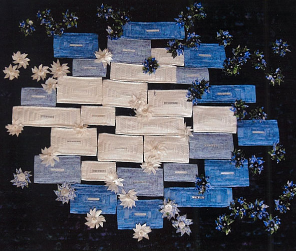 Ihre ersten Werke entstanden aus bunten Stoffen. Ab 2007 reduzierte Annemarie Sprecher die Farben in ihren Arbeiten auf blau/weiss bis hin zu weiss. In der Ausstellung zeigt Annemarie Sprecher mehrheitlich Quilts in weiss.