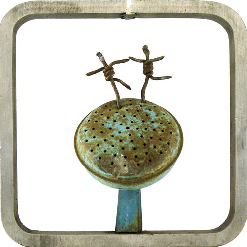 Mit subtiler Poesie führt uns Fehlmann vor, wie ausrangierte Alltagssachen zu kreativen Gebilden voller Assoziationen taugen. Ein unerschöpflicher Ideenreichtum steckt in den neusten Arbeiten, wo sich Fehlmann nach langer Zeit erstmals mit dem kleinen Format intensiv beschäftigt. Es gelingt ihm bei den Miniaturen die ganze Kraft der großen Eisenbilder auf kleinster Fläche zu verdichten und jedes einzelne Bild erzählt wiederum eine eigene Geschichte. Die Leichtigkeit im Umgang mit dem doch so sperrigen Material kann man nicht nur in den Miniaturen sondern auch in der Großplastik vor der Villa Liebegg bestaunen, bei der sich die Doppelfigur „Dialogo“ mit dem Wind, elegant wie im Gespräch wippend, leicht bewegt.