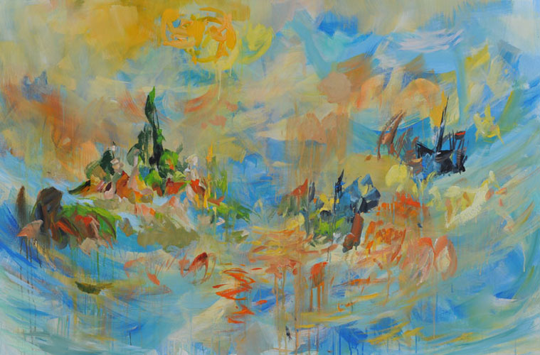 Die neusten abstrakten Bilder hat Peti Wiskemann im Herbst 2009 in San Francisco gezeichnet und damit eine neue Arbeit entwickelt an der er bis jetzt weiterarbeitet. Es sind imaginäre Landschaften, sich wiederholende Muster, Linien im Fluss...
