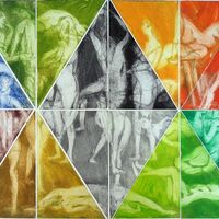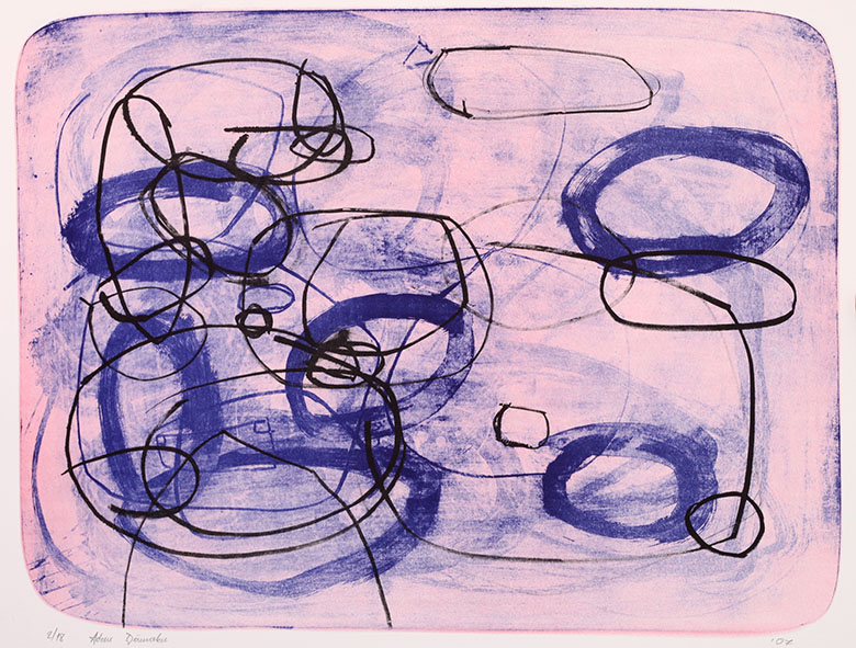 Das gemeinsame Arbeiten beim Drucken ermöglicht es den Künstlern aus ihrer Isolation herauszutreten, um in der Gebundenheit des Handwerks sich kennenzulernen und zu messen.