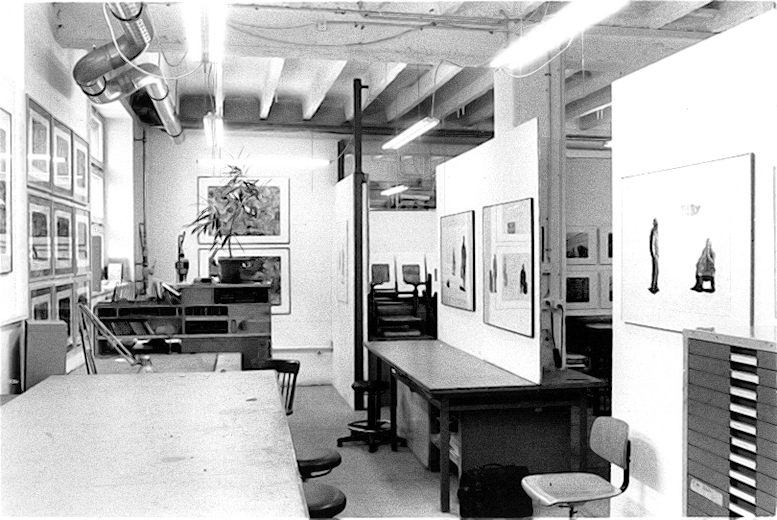 Jede Kunst braucht ihren Ort. Was dem Maler das Atelier, ist mir meine Druckwerkstatt. Seit etwas über zehn Jahren betreibe ich sie als offenes Druckatelier, das von Künstlern und Interessierten benutzt werden kann. Hier ist alles versammelt, was das heutige Kurpferdruck-Handwerk braucht: von Druckpressen bis zum Fotokopierer, von Säurebecken bis zum Computer. Meine Druckwerkstatt ist mein Werkraum. Dies hat durchaus eine metaphorische Dimension, denn die Bezüge zwischen meinem Arbeitsumfeld und meinen Bildräumen sind sicht- und spürbar. Wer mein Atelier besucht, besucht auch meine Bildräume – und stellt dabei fest: So komplex die Organisation der Werkstatt mit all ihren verschiedenen Arbeitsbereichen, so vielschichtig die Organisation meiner Bildwelten. Unterteilungen, Übergänge und Überlagerungen spielen dabei eine wichtige Rolle.