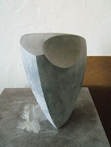 Der beständigste Begleiter durch all die Jahre des Schaffens aber ist Stein, Steatit und Alabaster. Es sind stark reduzierte Formen, die in stiller, geduldiger Arbeit entstehen, von Hand und nach Augenmass.