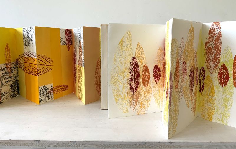 Jedes ihrer Leporellos hat ein eigenes Thema, das jeweils in zwei Varianten gezeigt wird: Vorder- und Rückseite sind bemalt und bedruckt, und ergänzen sich.
