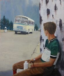 Der Titel bezieht sich auf ein Bild, in dieser Ausstellung. Ein altes Foto aus meinen damaligen «Velotouren-Tagebüchern» diente mir als Vorlage.