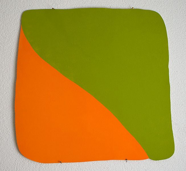 Neben Farbstiftzeichnungen, Collagen und kleinen Stickereien zeige ich in dieser Ausstellung auch Wandobjekte. Diese sind aus dünnen Sperrholzplatten ausgesägte Formen. Ein Teil dieser Holzobjekte sind freie Formerfindungen bemalt mit einfachen Farbklängen, ein anderer Teil beinhaltet Motive aus der Natur, wie Flechten, Grasbüschel, Holzstücke etc. Meine Absicht ist es, dass diese Holzobjekte unmittelbar an die Wand angebracht, wie direkt auf ihr aufgemalt wirken.