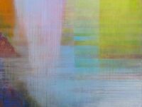 In einer weiteren freien Arbeitsgruppe intuitiver Bilder, wird das Wort, das sie zuerst auf die weisse Leinwand schreibt, in vielen Schichten übermalt, sodass schlussendlich nur noch die Kraft des Wortes in Farbe stehen bleibt. Auch ihre Objekte sind farbintensiv und verspielt und zeugen wie alle Arbeiten von Harmonie, Balance und Konzentration.