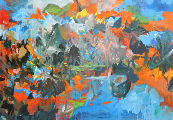 Die neusten abstrakten Bilder hat Peti Wiskemann im Herbst 2009 in San Francisco gezeichnet und damit eine neue Arbeit entwickelt an der er bis jetzt weiterarbeitet. Es sind imaginäre Landschaften, sich wiederholende Muster, Linien im Fluss...