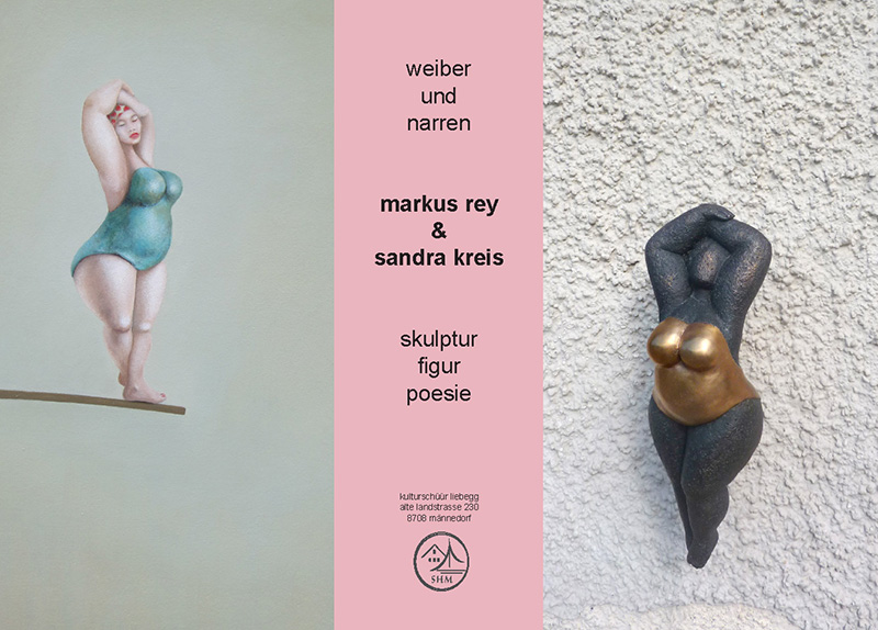 Ich liebe die Figur des Narren und sie begleitet mich auf verschiedene Art und Weise schon beinahe mein ganzes Leben. So ist es nicht weiter verwunderlich, dass mein Narrentum auch in dieser Ausstellung da und dort und zwischen den wunderbaren Weibern von Sandra Kreis schimmern wird.