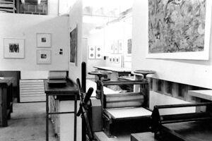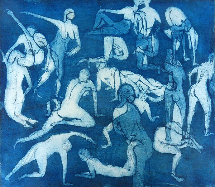 Das gemeinsame Arbeiten beim Drucken ermöglicht es den Künstlern aus ihrer Isolation herauszutreten, um in der Gebundenheit des Handwerks sich kennenzulernen und zu messen.