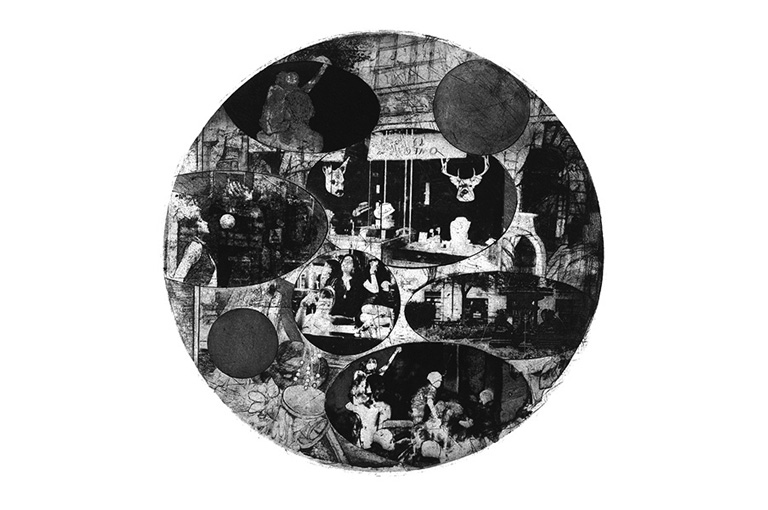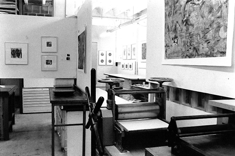 Jede Kunst braucht ihren Ort. Was dem Maler das Atelier, ist mir meine Druckwerkstatt. Seit etwas über zehn Jahren betreibe ich sie als offenes Druckatelier, das von Künstlern und Interessierten benutzt werden kann. Hier ist alles versammelt, was das heutige Kurpferdruck-Handwerk braucht: von Druckpressen bis zum Fotokopierer, von Säurebecken bis zum Computer. Meine Druckwerkstatt ist mein Werkraum. Dies hat durchaus eine metaphorische Dimension, denn die Bezüge zwischen meinem Arbeitsumfeld und meinen Bildräumen sind sicht- und spürbar. Wer mein Atelier besucht, besucht auch meine Bildräume – und stellt dabei fest: So komplex die Organisation der Werkstatt mit all ihren verschiedenen Arbeitsbereichen, so vielschichtig die Organisation meiner Bildwelten. Unterteilungen, Übergänge und Überlagerungen spielen dabei eine wichtige Rolle.
