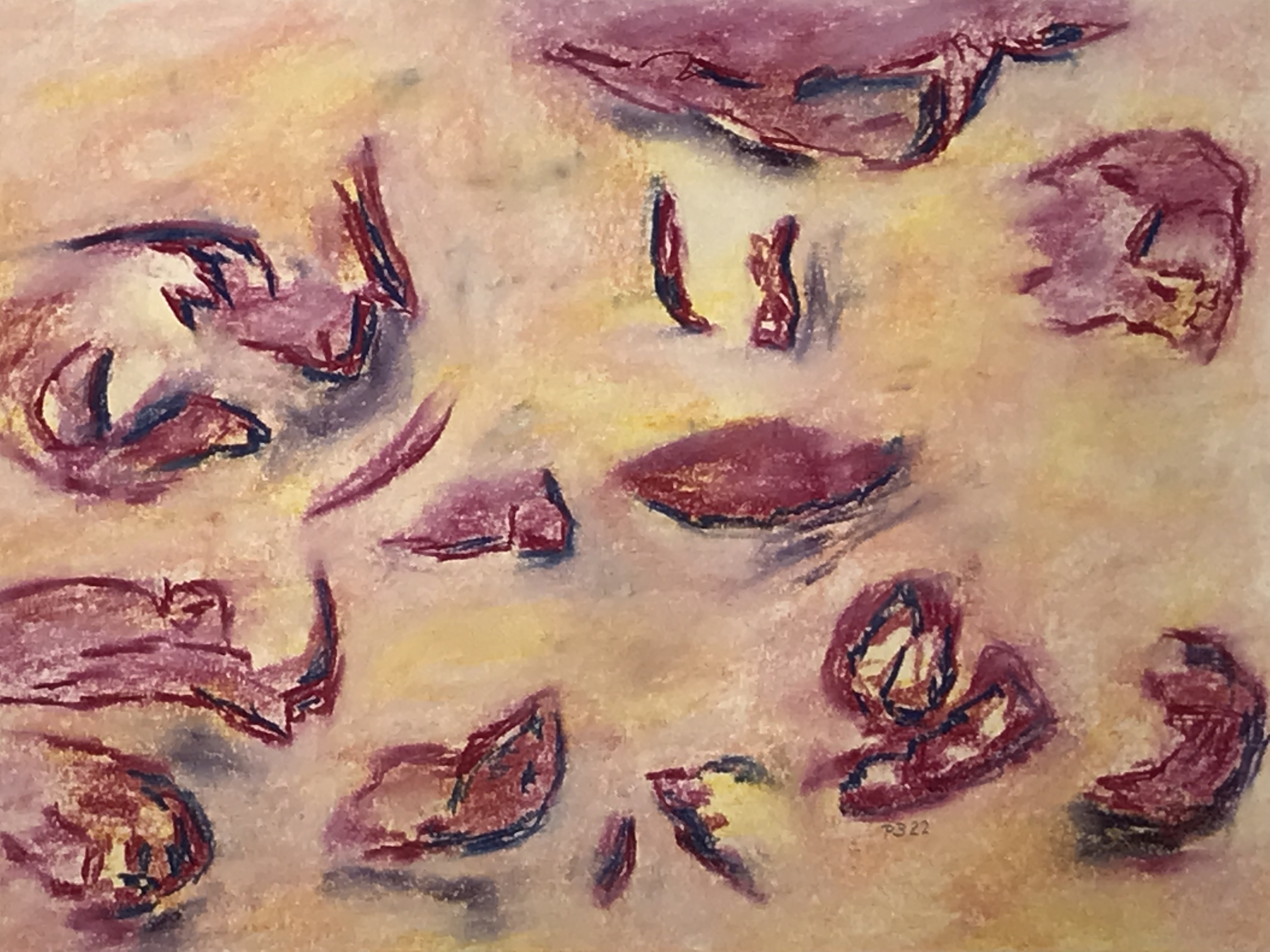 Beim Joggen, bei Spaziergängen, Wanderungen, in den Ferien etc. lasse ich mich inspirieren von Naturbildern. Mit Fotoapparat oder Skizzenbuch fange ich diese ein. In verschiedenen Umsetzungsschritten und Abstraktionen beginnen die Veränderungen der ursprünglichen Formen; dazu tragen unterschiedliche Malmittel und verschiedene Techniken bei. Teilweise knüpfe ich an frühere Themen an und / oder verbinde sie.